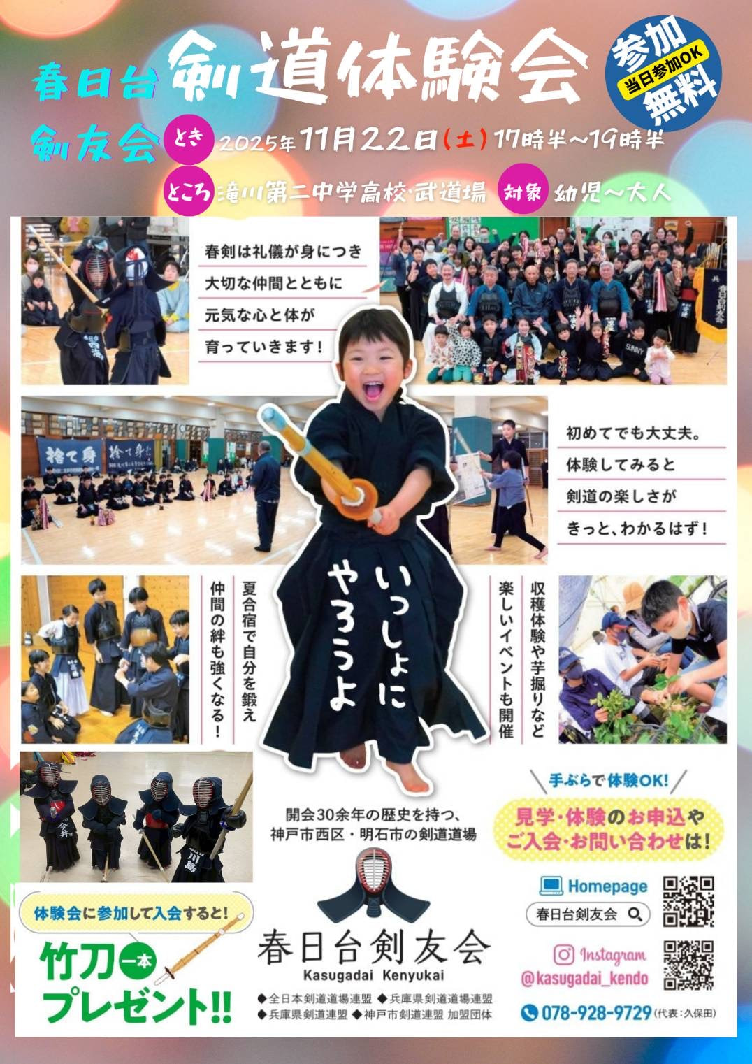 春日台剣友会では11/22(土)に「剣道体験会」を開催します!!