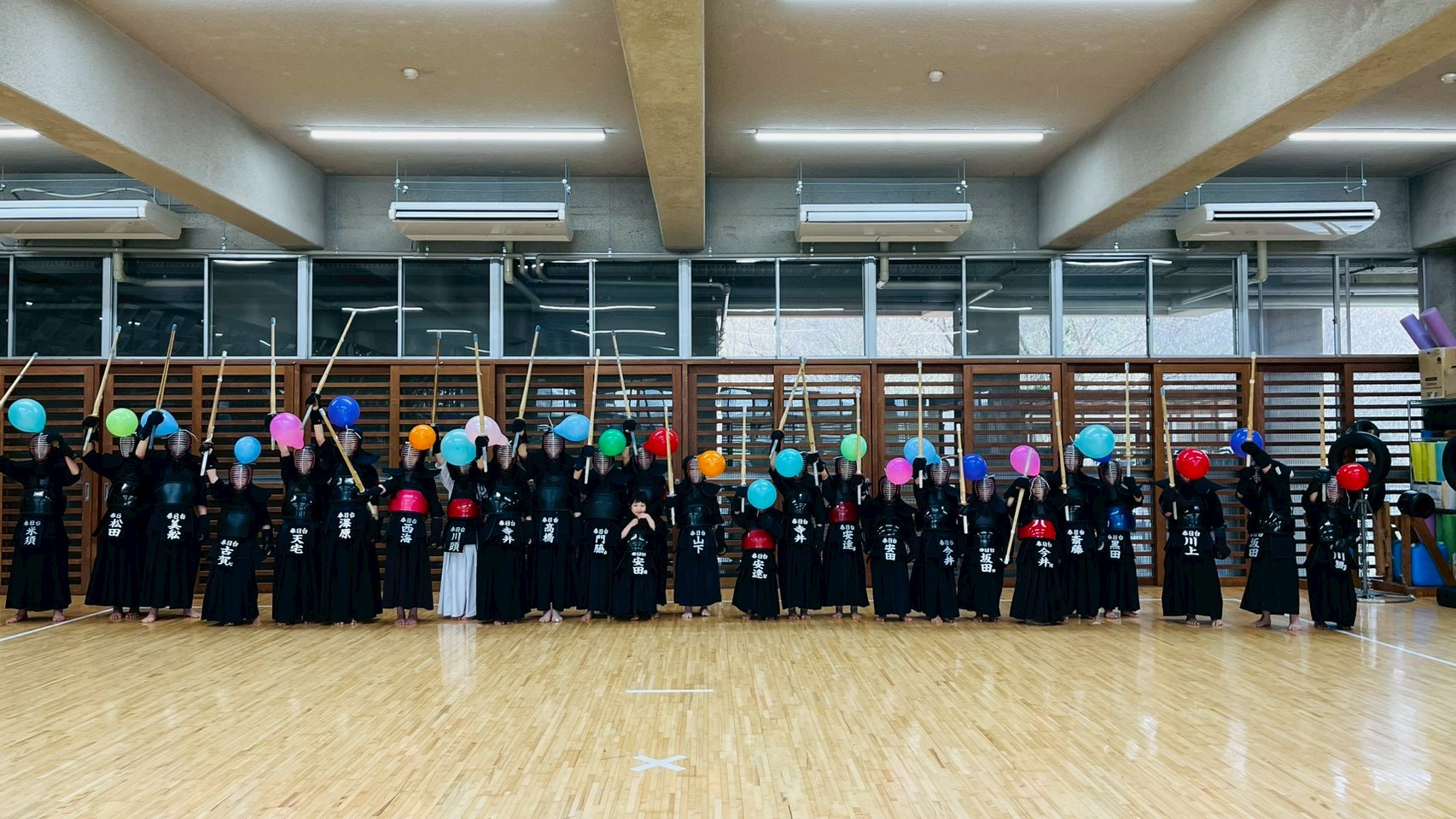 春と秋年2回開催している昇級審査&部内大会。と、その前に。第一回春日台剣友会風船争奪大会が開催されました!中々割れない風船を選んだ運も実力の内。普段とはちょっと違った剣道ならではの遊びに子供達も大盛り上がり♪緊張もほぐれたかな♪